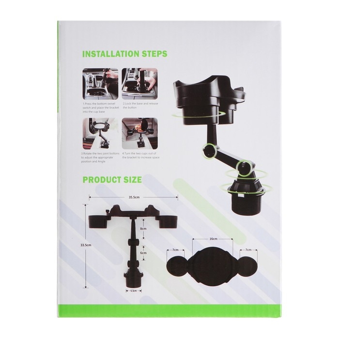 Автомобильный держатель-подстаканник — это максимально удобный аксессуар, который пригодится каждому автолюбителю и пассажирам. Универсальная подставка для машины надёжно фиксируется и имеет отделения для стаканов или термокружек. Рядом на автомобильном столике можно положить телефон, планшет или еду для перекуса. Если нужно дорожный органайзер можно легко сложить или отодвинуть с помощью специального кронштейна. Столик для автомобиля с держателем для стаканов и бутылок прекрасно подходит для длительных поездок, путешествий и деловых командировок. Особенно эта дорожная полка нужна, если с вами в дорог будут дети. Столик для машины с креплением позволят держать под рукой всё, что нужно. Кроме того, автомобильный органайзер с кронштейном можно использовать в качестве места для приема пищи. Компактный дорожный столик в автомобиль обеспечит максимальный комфорт пассажирам. Аксессуар можно легко и просто закрепить.