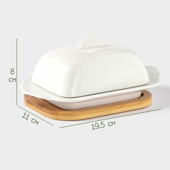 Маслёнка фарфоровая на бамбуковой подставке BellaTenero, 320 мл, цвет белый