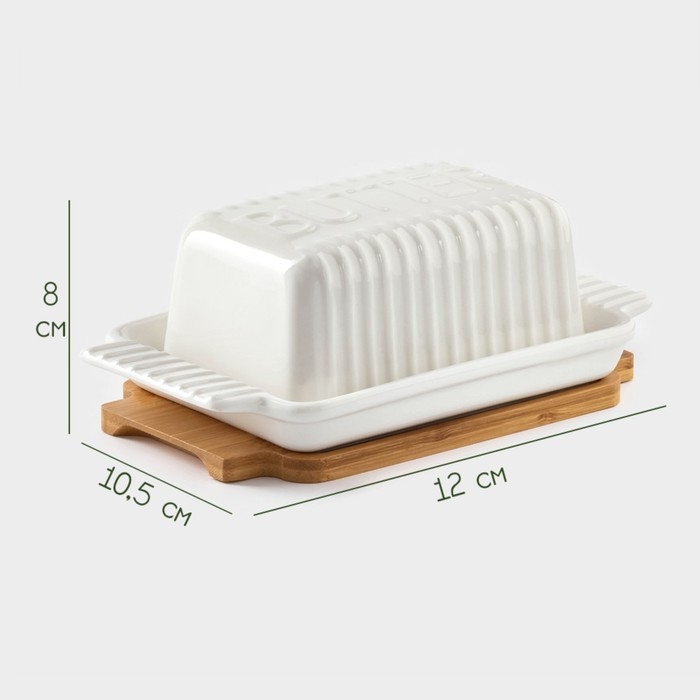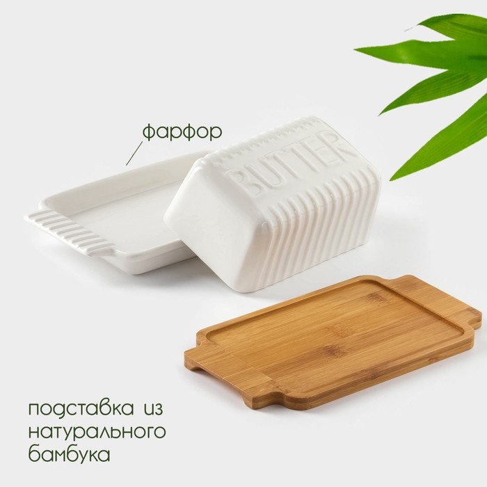 Маслёнка фарфоровая на бамбуковой подставке BellaTenero, 320 мл, цвет белый