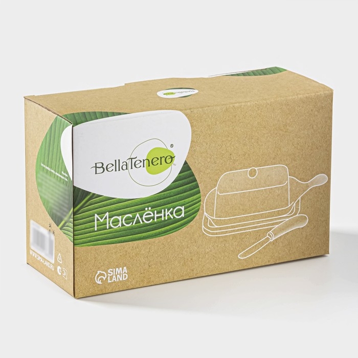 Маслёнка – традиционный русский аксессуар. В холодильнике масло вбирает в себя запах других продуктов, на столе – собирает пыль. Маслёнка защищает масло от постороннего воздействия и украшает ваш стол. Фарфоровая маслёнка BellaTenero состоит из подноса и плотно прилегающей крышки, предотвращая преждевременное обветривание и впитывание посторонних запахов продуктов при хранении в холодильнике.