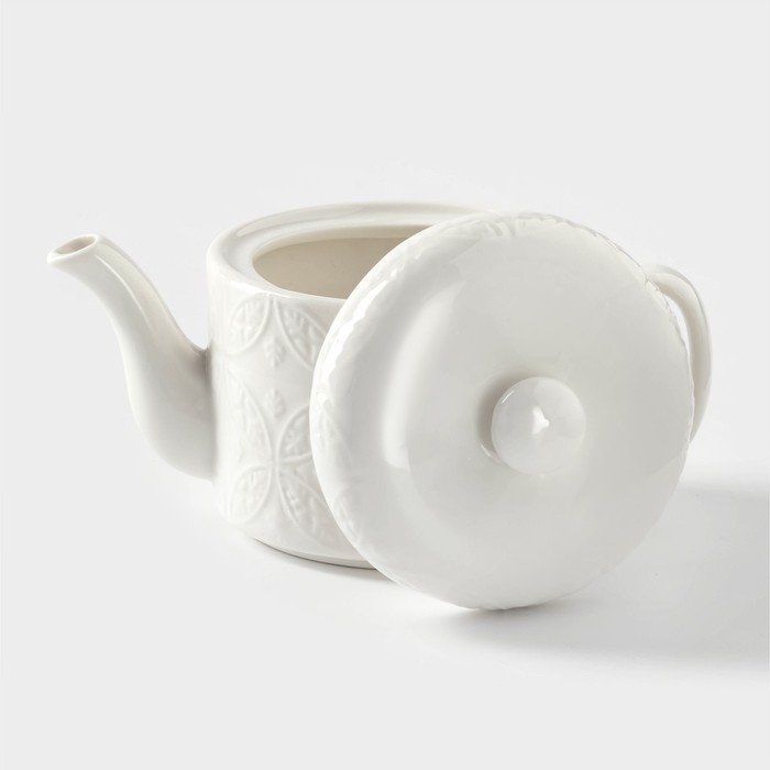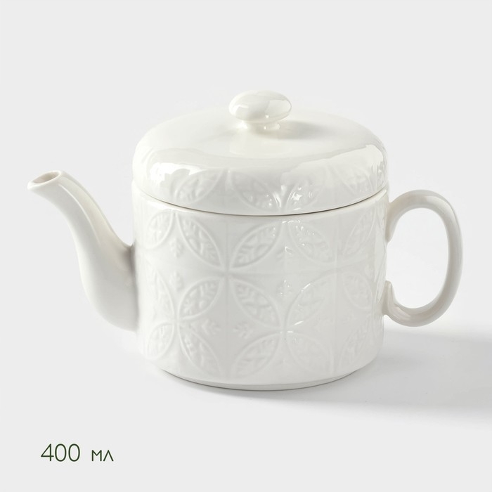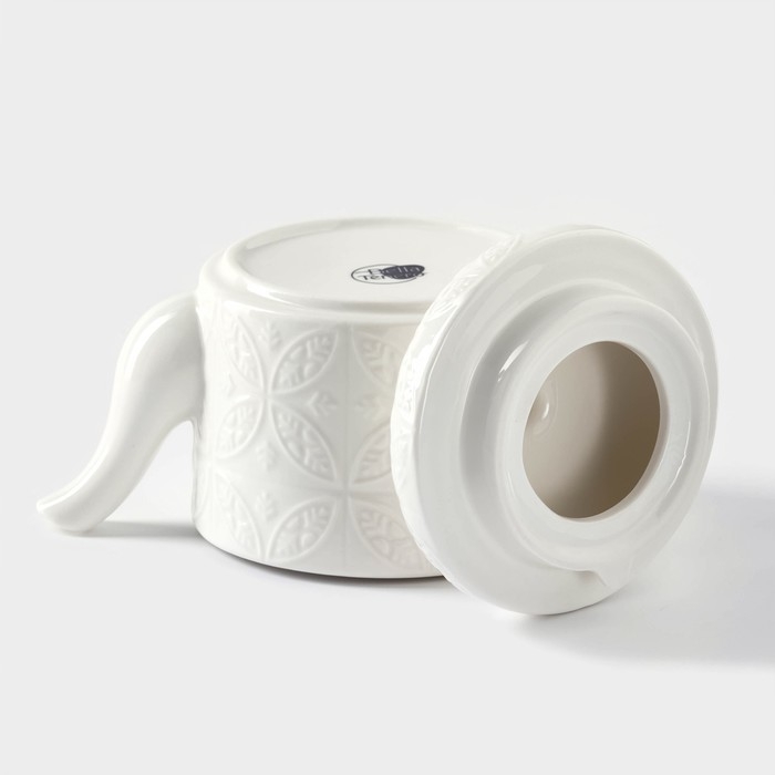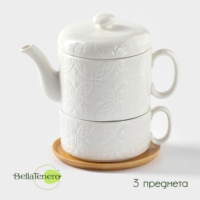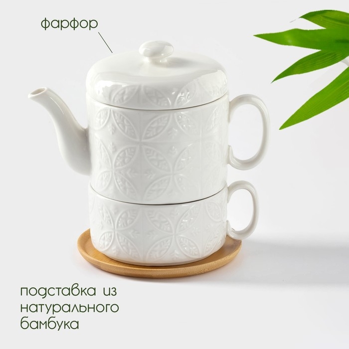 Набор фарфоровый чайный BellaTenero «Орнамент», 3 предмета: чайник 400 мл, кружка 280 мл, бамбуковая подставка, цвет белый