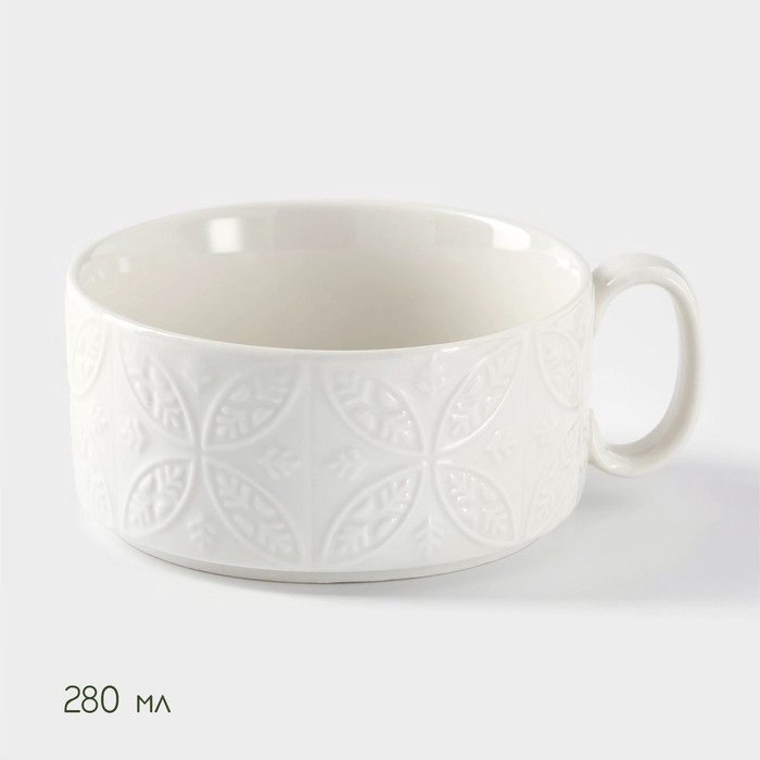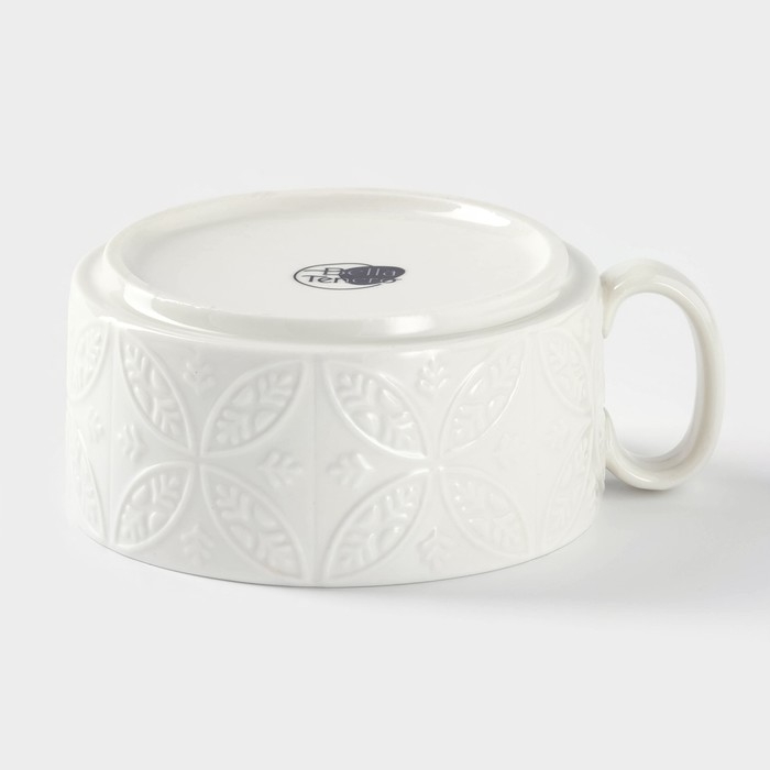 Чайная пара керамическая «Лист», 2 предмета: кружка с ложкой 180 мл, блюдце d=13,5 см, цвет белый