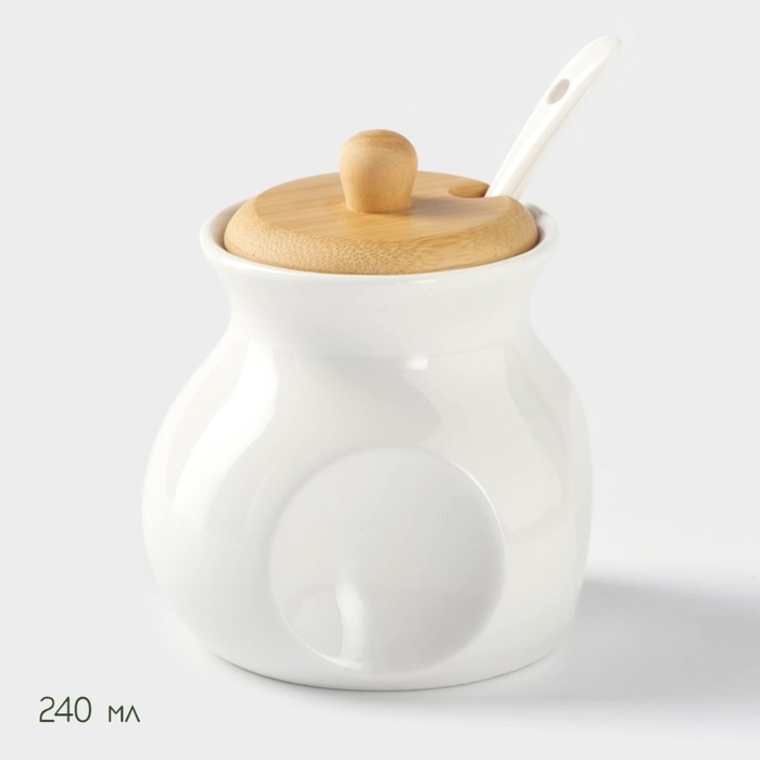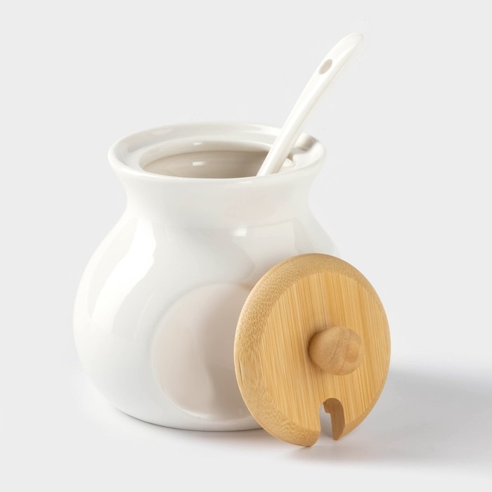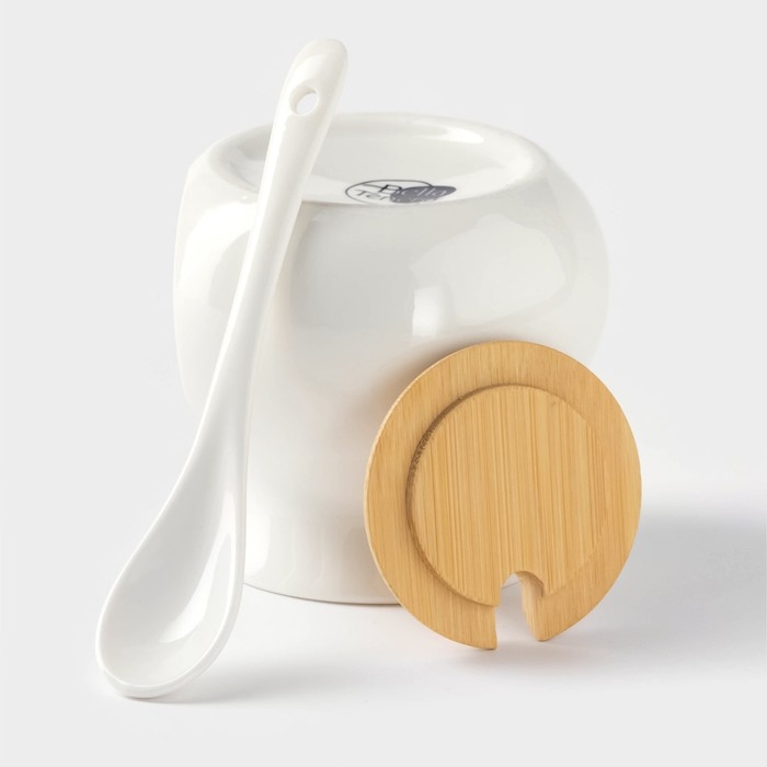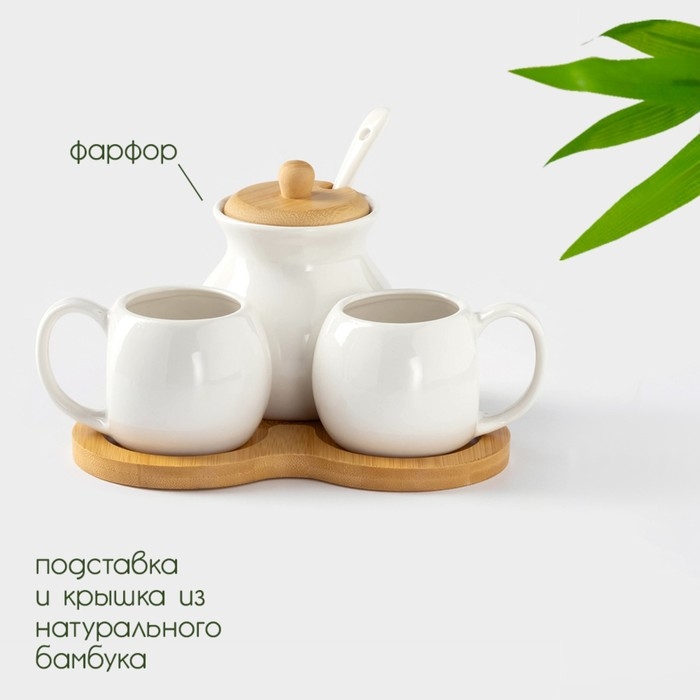 Набор фарфоровый чайный BellaTenero, 5 предмета: 2 чашки 100 мл, сахарница с крышкой 240 мл, ложка, бамбуковая подставка, цвет белый