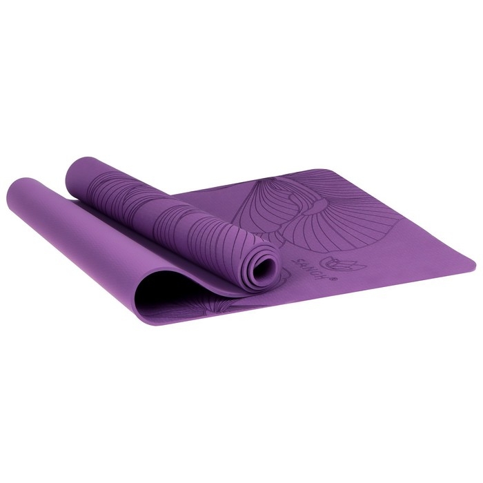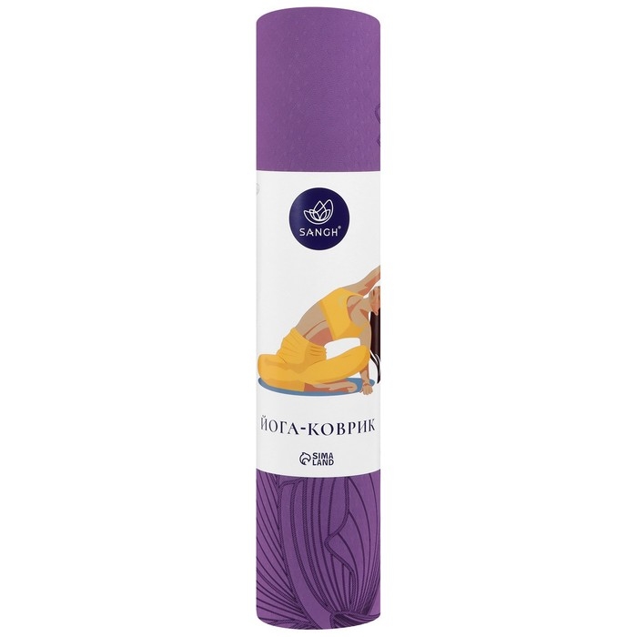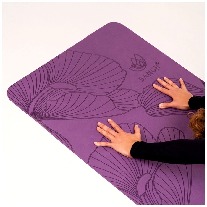 Коврик для йоги Sangh Flowers, 183х61х0,6 см, цвет фиолетовый