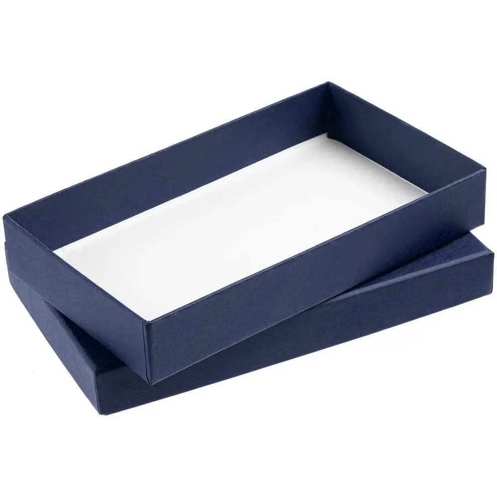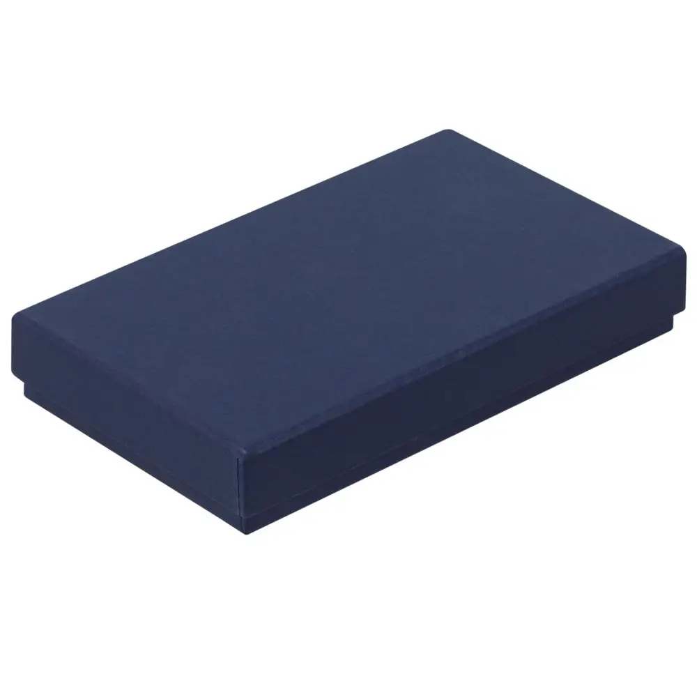 Коробка выполнена из переплетного картона, кашированного дизайнерской бумагой Malmero Bleu.