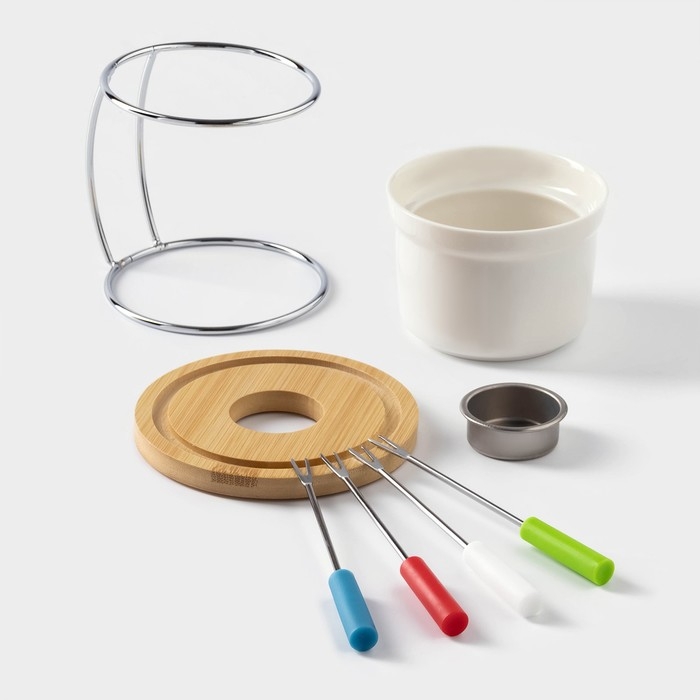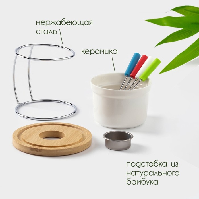 Набор для фондю керамический BellaTenero, 5 предметов: чаша 250 мл, подставка, 4 шпажки, цвет белый