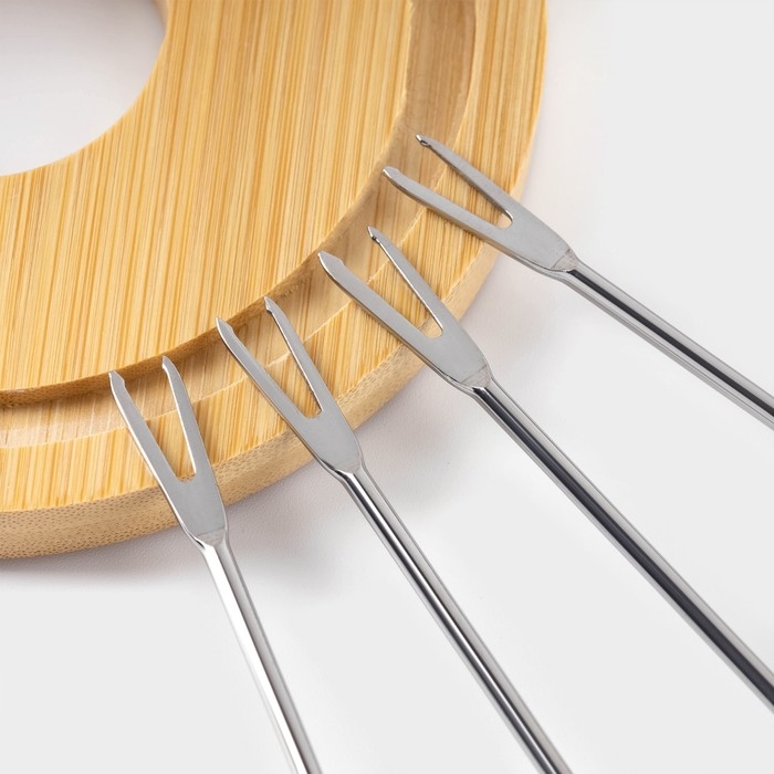 Набор керамический для фондю Доляна «Глянец», 6 предметов: чаша 400 мл, подставка, 4 шпажки, цвет белый