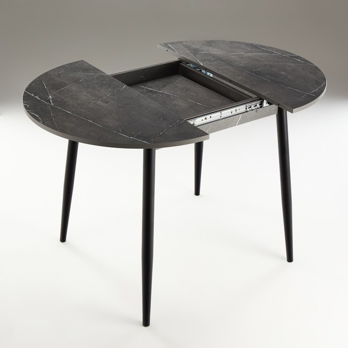 Стол раздвижной круглый "Орион мини", 800/1110х800х750, ноги металл черные/Каспий тёмный