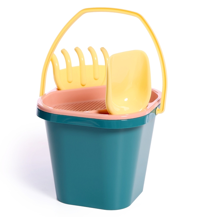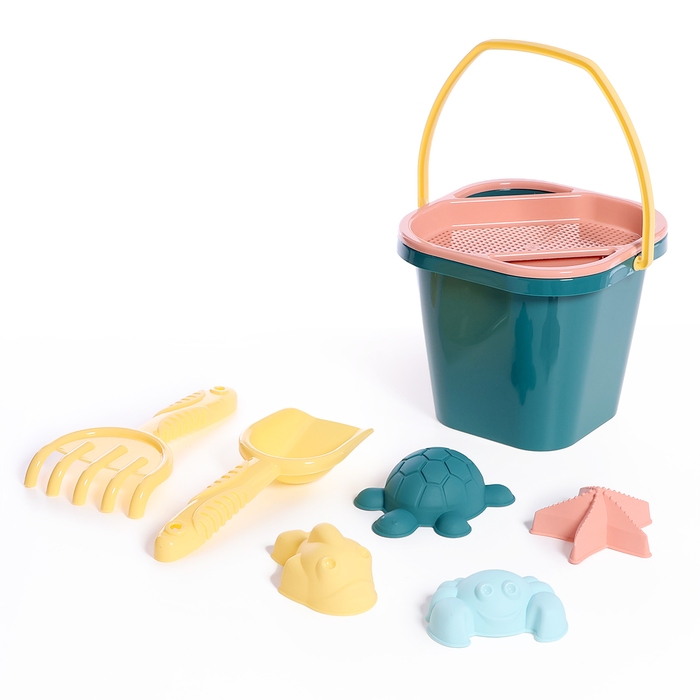 Набор для игры в песке «Изумрудный город»: ведерко, сито, совочек, грабли, 4 формочки