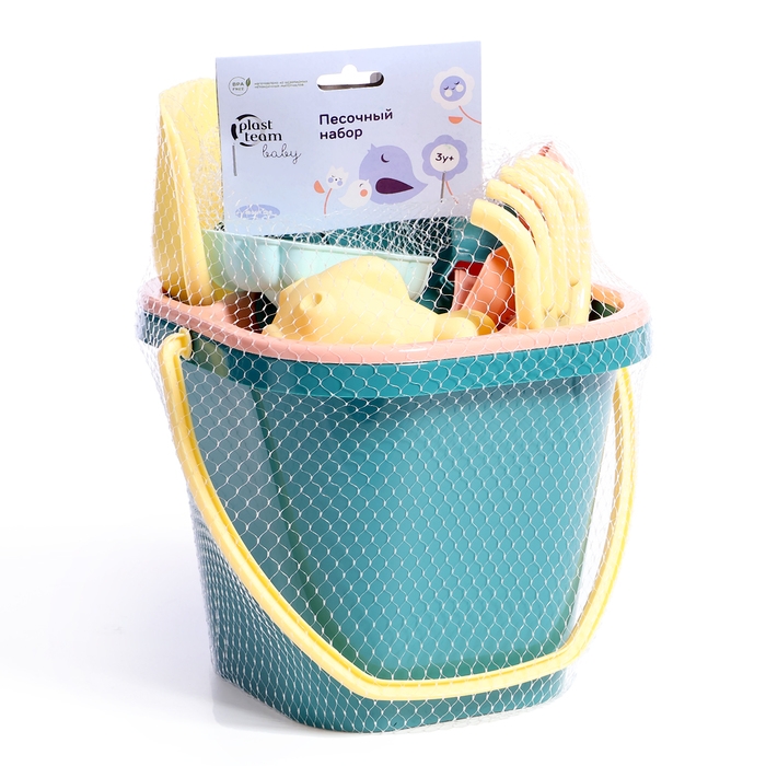 Песочный набор №155: ведро, ситечко-цветок, совок, грабельки, 2 формочки, лейка, цвета МИКС
