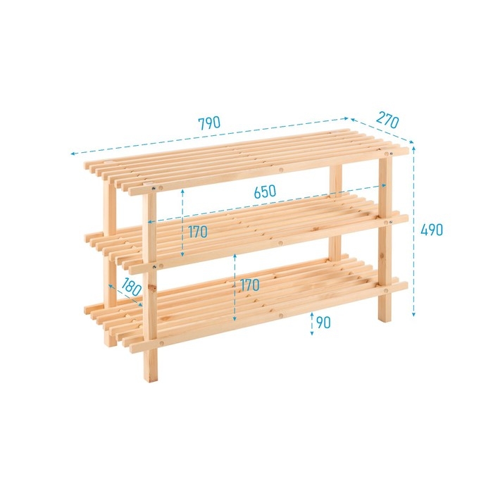 Полка для обуви BUNDIS 3, 79х27х49, Массив сосны