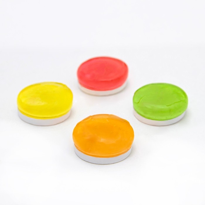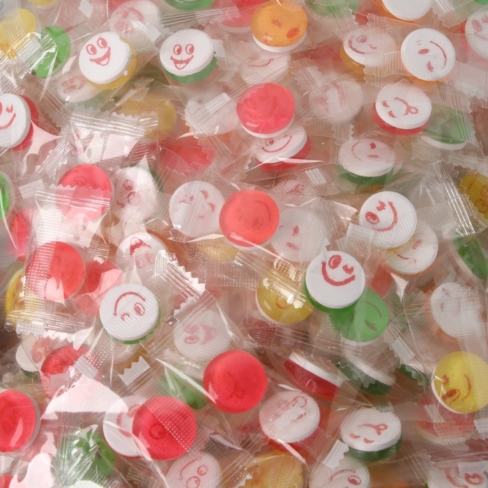 Микс карамели со вкусом лимона, клубники, яблока и колы. Одна сторона карамели леденцовая, другая в виде аскорбинки с забавными смайликами. Такие забавные конфеты точно понравятся каждому сладкоежке!