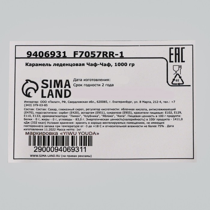 Карамель леденцовая "Аскорбинка со смайликом" (лимон, клубника, яблоко, кола), 1000 г
