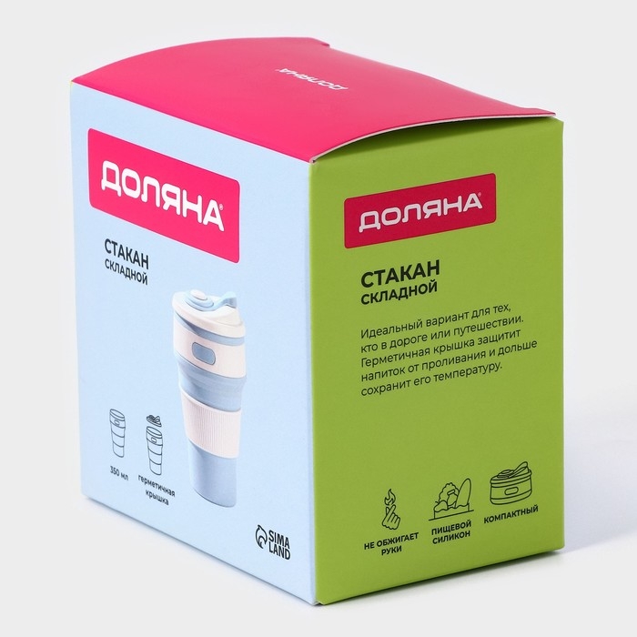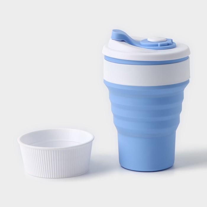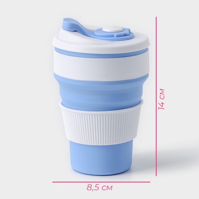 Стакан складной с крышкой Доляна «С собой», 350 мл, 8,5×14 см, цвет голубой