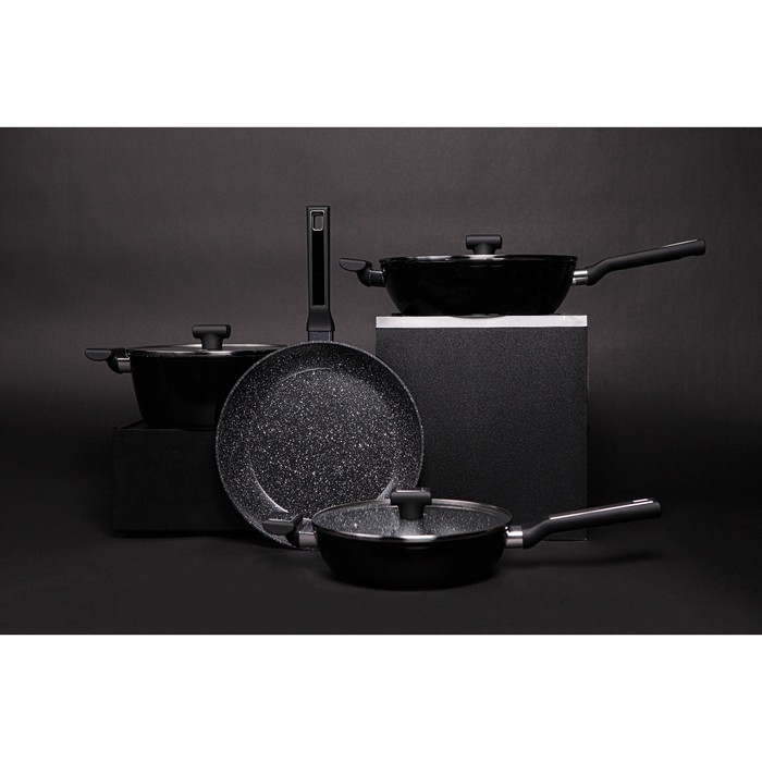 В серии Warrior представлены ковш, кастрюля, сковорода с крышкой и без, блинная, гриль. Соберите всю посуду из коллекции, чтобы готовить было ещё приятнее!