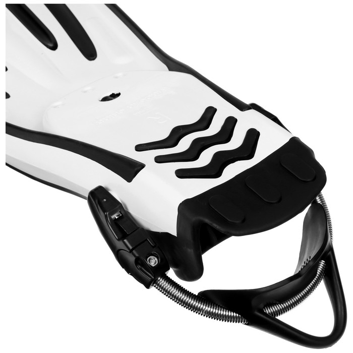 - За счёт регулируемой пружины и противоскользящего покрытия на пятке ласта надёжно фиксируется на ноге.