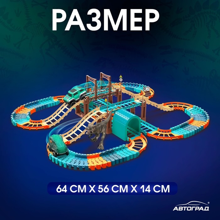 Автотрек «Дино-трек», с 2 машинками, работает от батареек