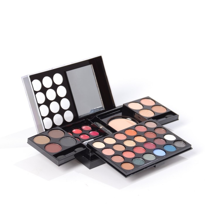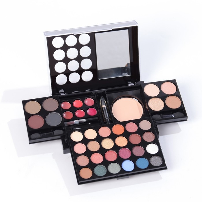 Подарочный набор косметики не включает в себя деликатные и строго индивидуальные аксессуары типа тональных кремов, хайлайтеров , жидких бровей и накладных ресниц.