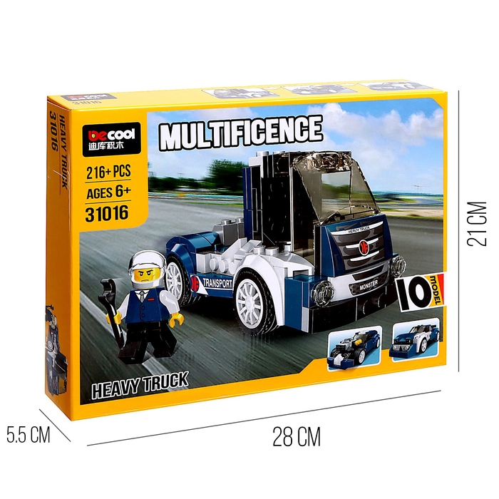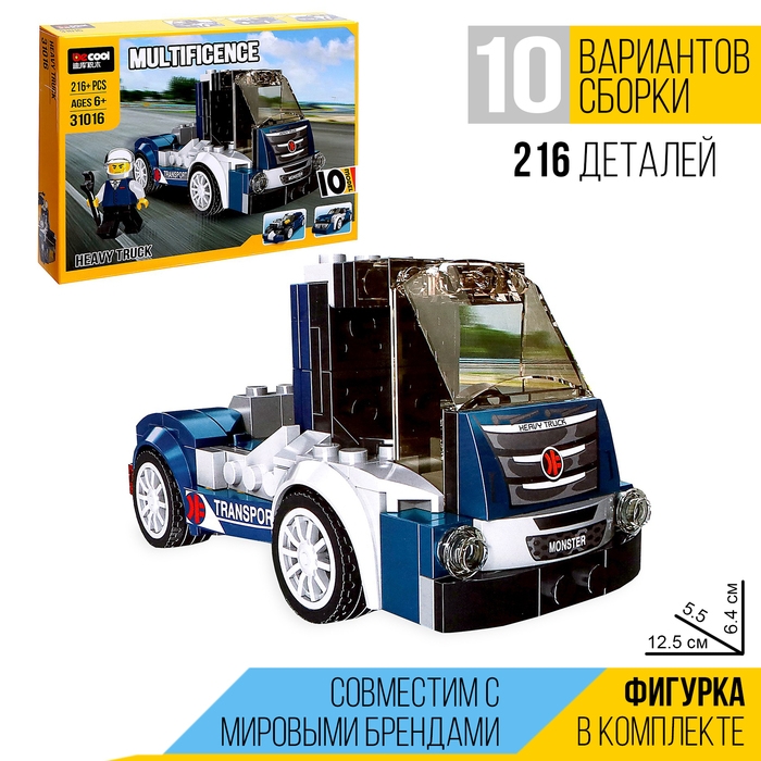 Конструктор блочный «Спорткар», 10 вариантов сборки, 216 деталей