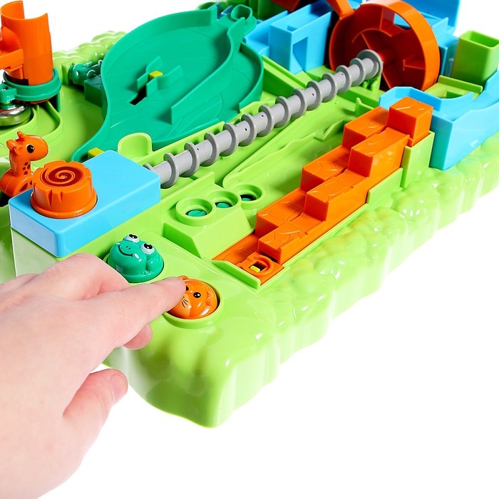 С настольной игрой-лабиринтом «Джунгли» ребёнок прокачает логическое мышление и мелкую моторику. Привести шарик к финишу не так-то просто — придётся подумать!