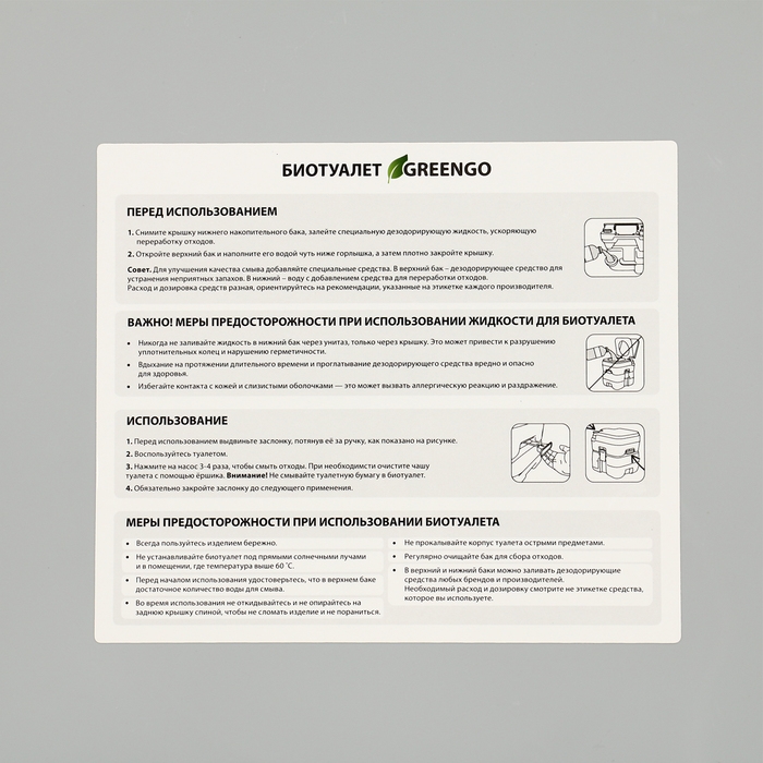 Биотуалет жидкостный, 10 л, съёмный бак, Greengo