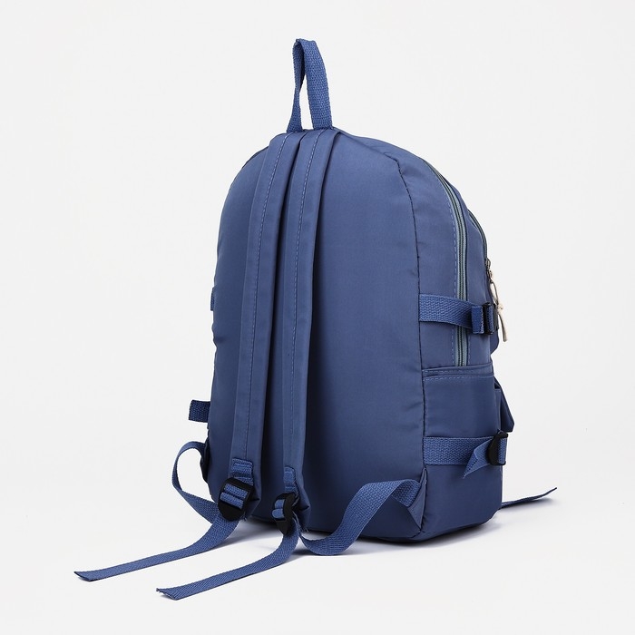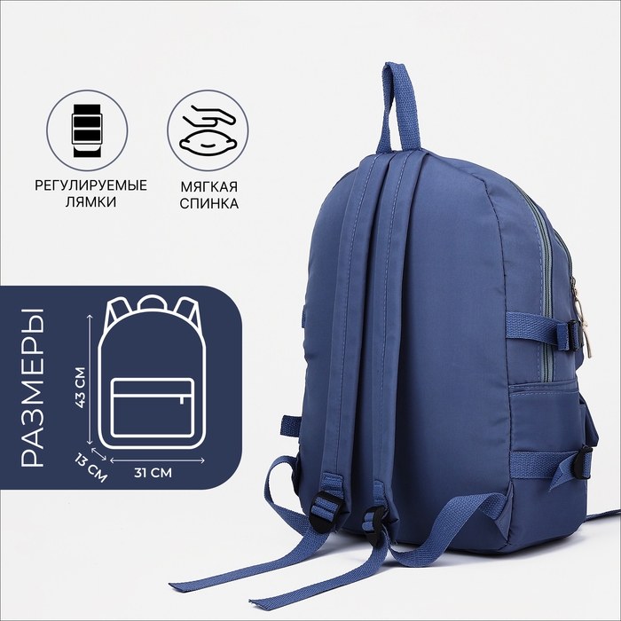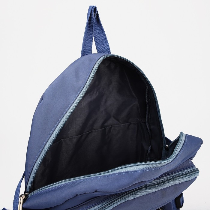 Рюкзак школьный на молнии, 3 наружных кармана, цвет синий