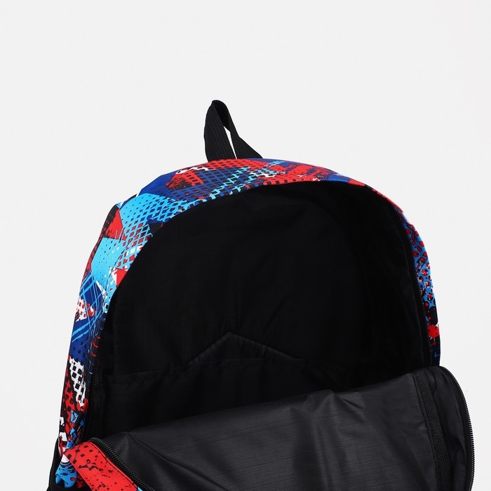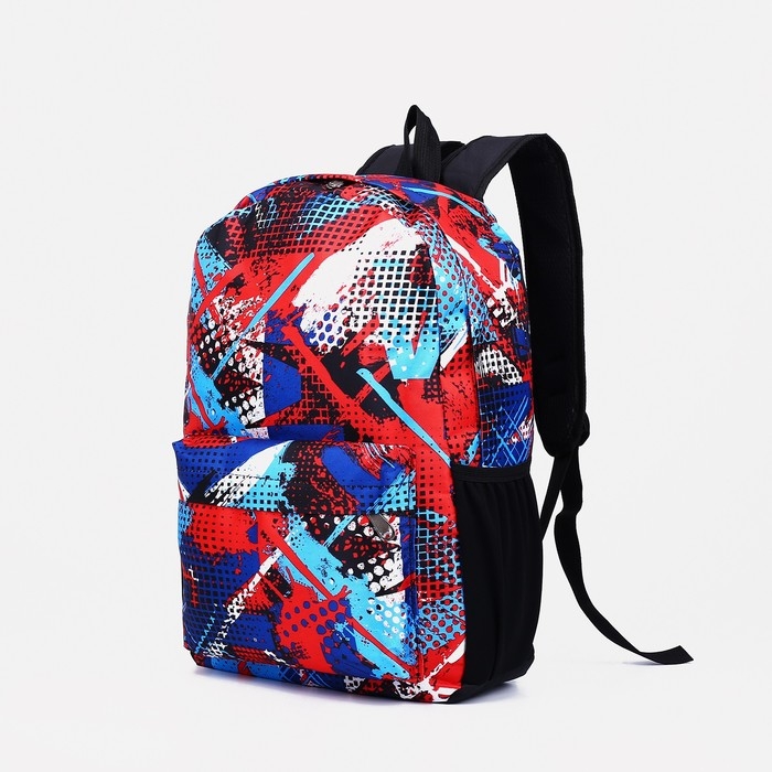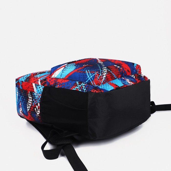 Рюкзак школьный из текстиля на молнии, наружный карман, цвет синий/красный