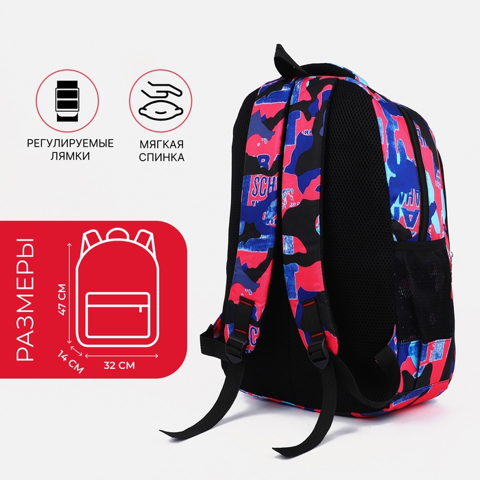 Рюкзак школьный на молнии из текстиля, 2 кармана, цвет розовый