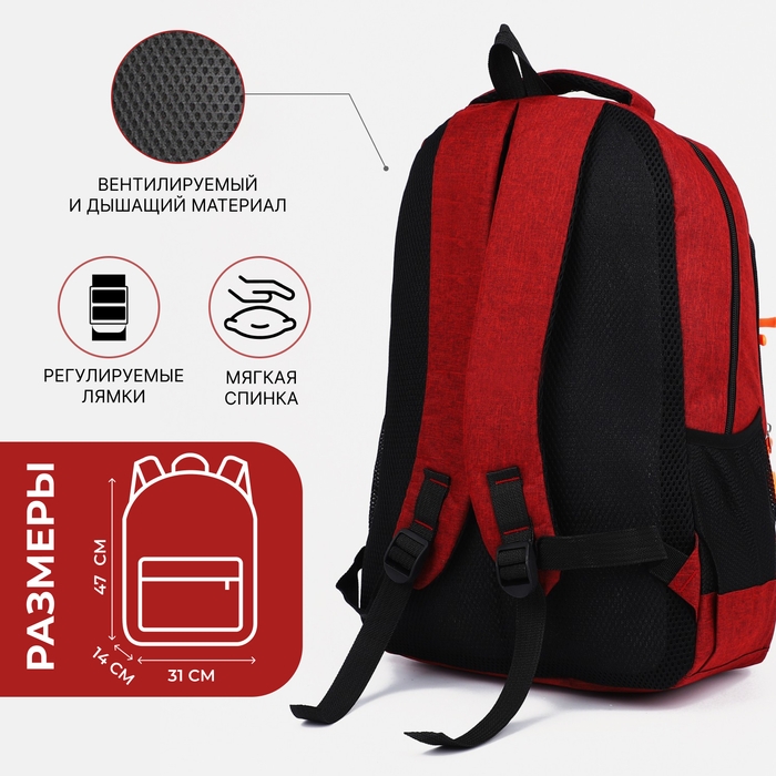 Рюкзак школьный на молнии, 2 наружных кармана, цвет бордовый