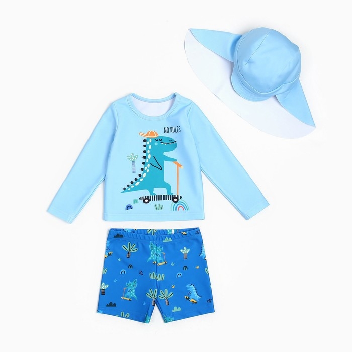 Купальник детский (лонгслив, шортики и панамка) Крошка Я "Дино", рост 98-104 см, цвет голубой