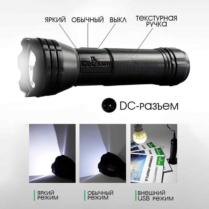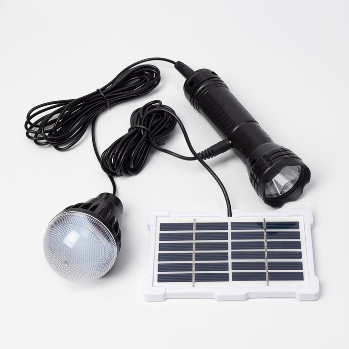 Фонарь ручной аккумуляторный 3 Вт, 1000 мАч, с солнечной панелью 1.2 Вт, 6 В и лампочкой