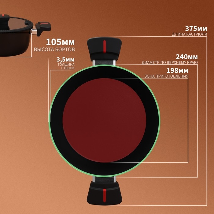 - Высококачественный кованый алюминий с толстым дном 3,5 мм сохранит форму изделия даже если кастрюля была перегрета.