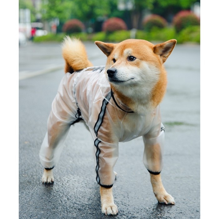 Дождевик-комбинезон для собак, р-р XS (ДС 22, ОГ 30, ОШ 21,5 см, вес 1-3 кг), прозрачный