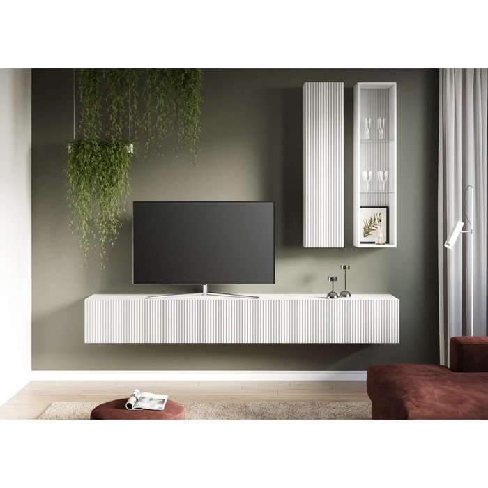 Тумба под ТВ подвесная Инфинити, 1800х330х330, цвет белый / белый матовый МДФ