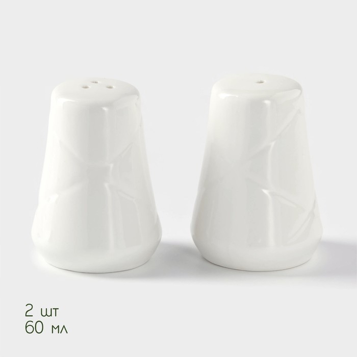 Набор фарфоровый для специй на бамбуковой подставке BellaTenero «Шарики», 2 предмета: солонка 100 мл, перечница 100 мл, цвет белый