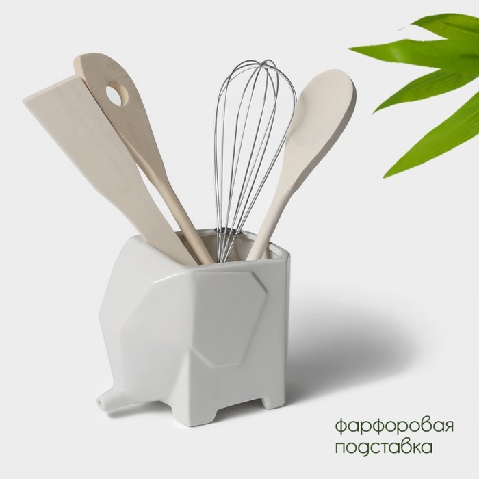 Набор кухонных принадлежностей на фарфоровой подставке BellaTenero «Слонёнок», 5 предметов, цвет белый