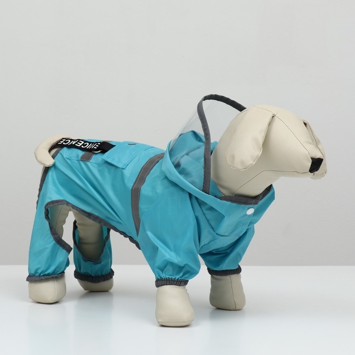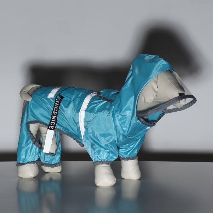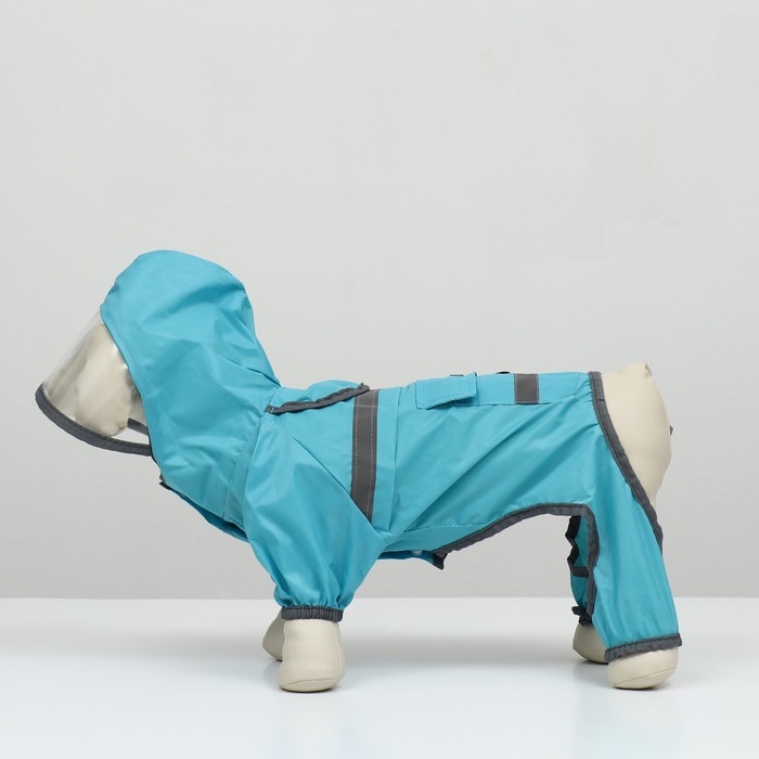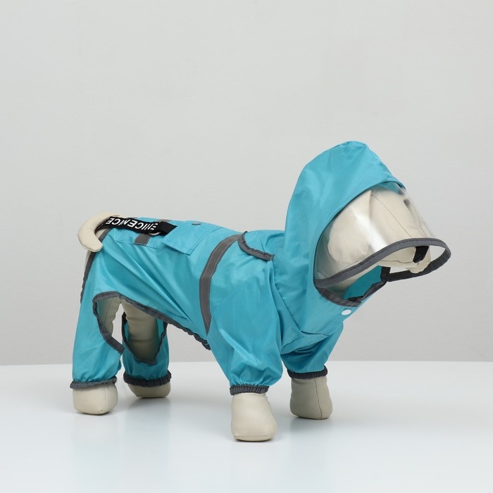 Комбинезон для собак, демисезонный с козырьком, размер М (ДС 32, Ог 45, ОШ 35 см), голубой