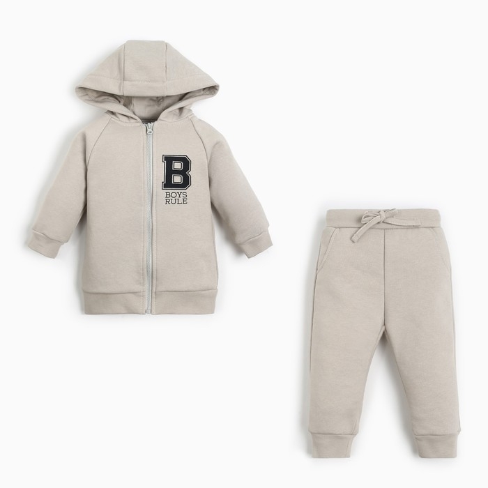 Костюм: толстовка и брюки Крошка Я Street style, рост 62-68 см, бежевый