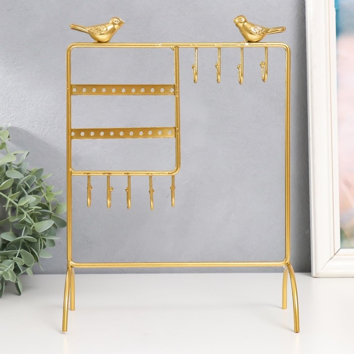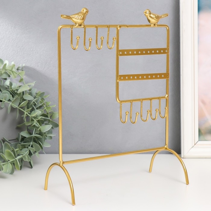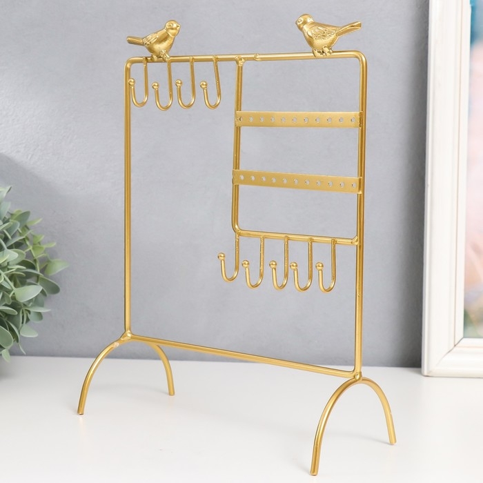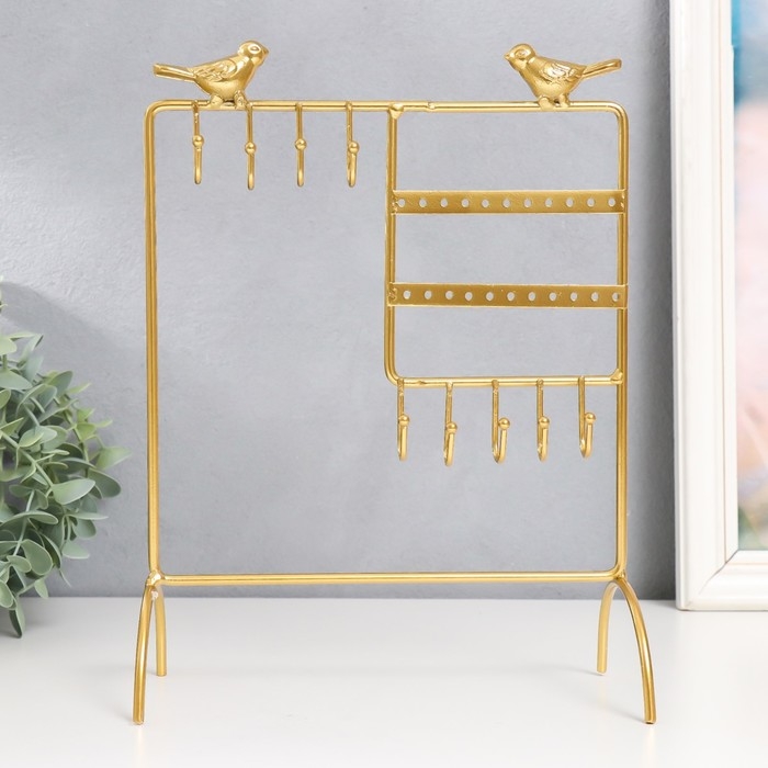 Если вы занимаетесь реализацией разнообразных украшений и аксессуаров, то вам нужно наглядно продемонстрировать свой товар, представив его в лучшем виде. Сувенир металл подставка для украшений "Две птички" золото 20х10х26 см как нельзя лучше справится с этой задачей! У каждого украшения появится своё место, откуда его можно будет хорошо рассмотреть.
