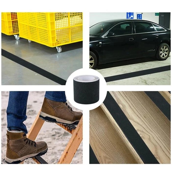 Противоскользящая самоклеящаяся серая лента используется в местах с большой проходимостью людей во избежание несчастных случаев из-за подскальзывания на влажных или масляных поверхностях. Противоскользящая клейкая лента незаменима для защиты от скольжения на ступенях, лестничных пролетах, погрузочных конвейерах, строительных лесах или помостах. Подходит для использования на улице и внутри помещения, в зонах входа, выхода, переходах, пандусах и лестницах.