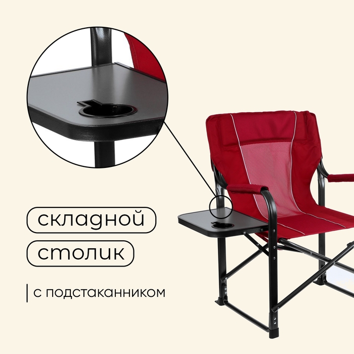 Кресло туристическое Maclay, стол с подстаканником, 63х47х94 см, цвет красный