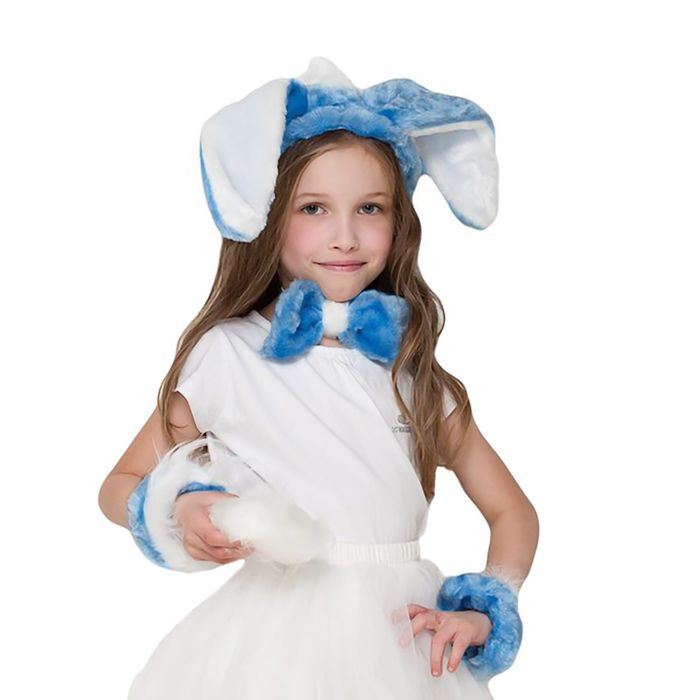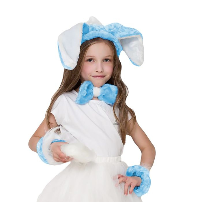 Карнавальный набор «Зайка», повязка с ушками р. 52, бант, нарукавники, цвет голубой МИКС