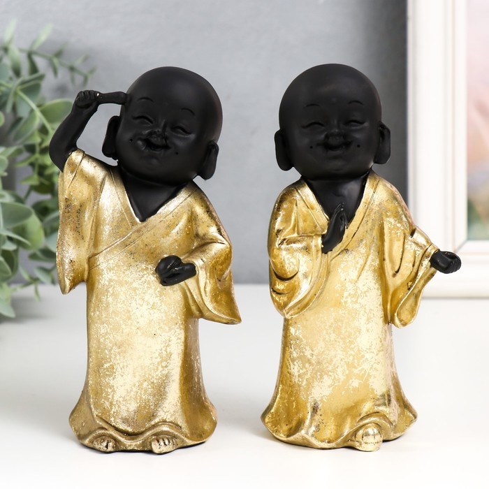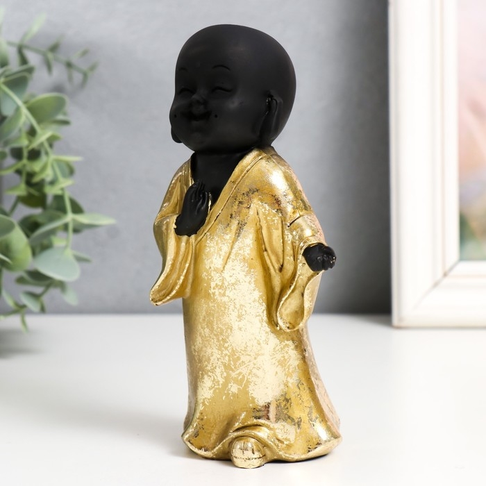 Сувенир полистоун "Маленький Будда в золотом. Приветствие" МИКС 7,5х5,5х15 см