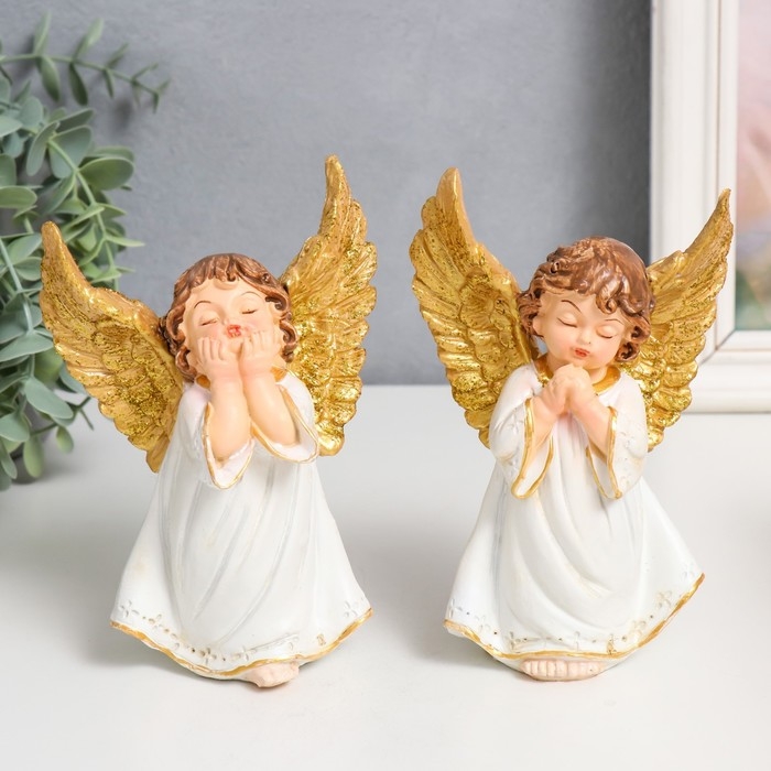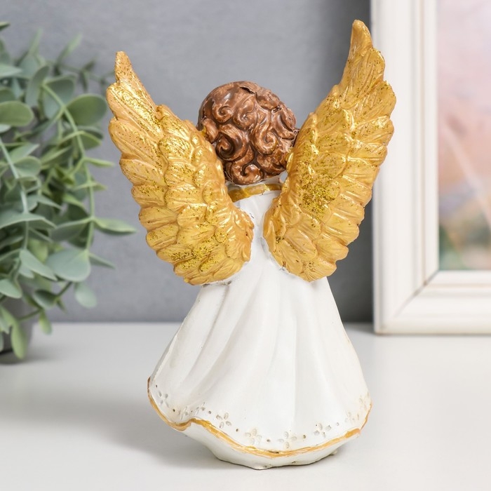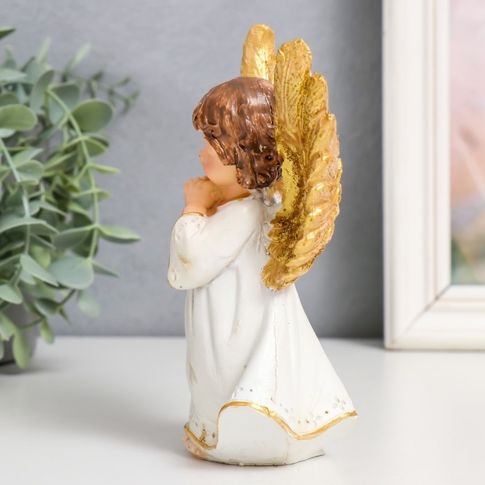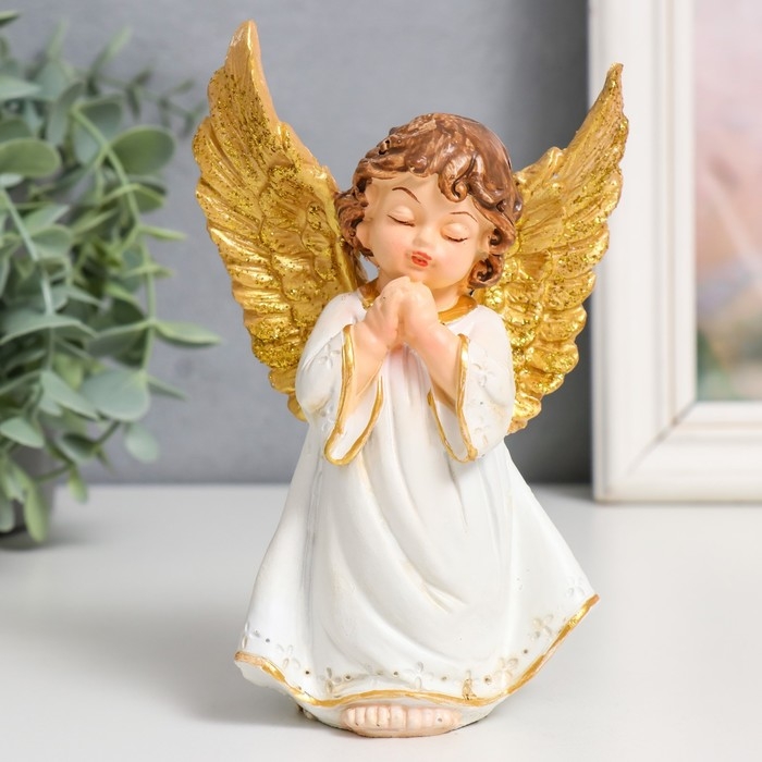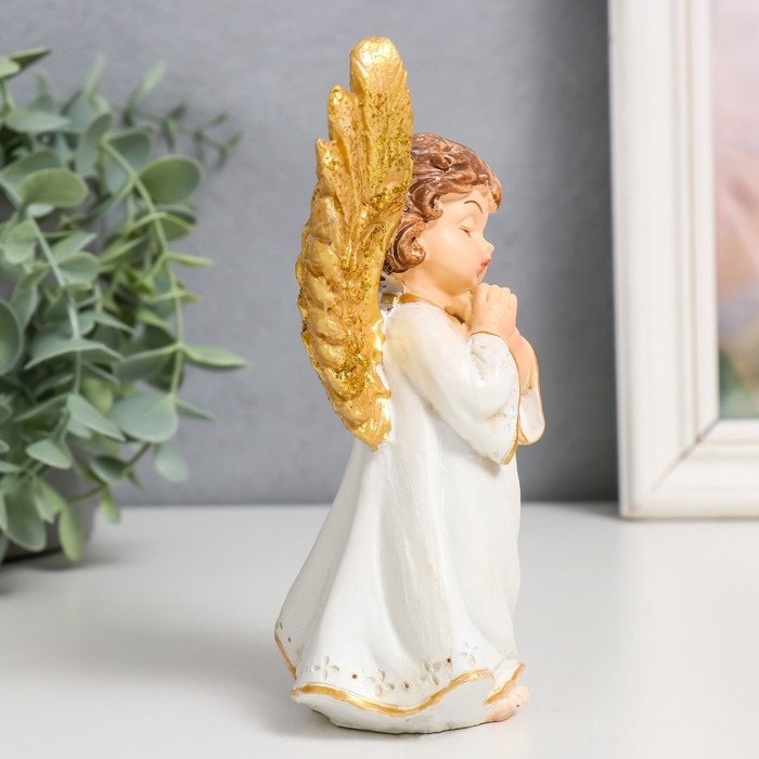 Сувенир полистоун "Малыш ангелок в бежевой тоге, золотые крылья" МИКС 11х7х11,5 см