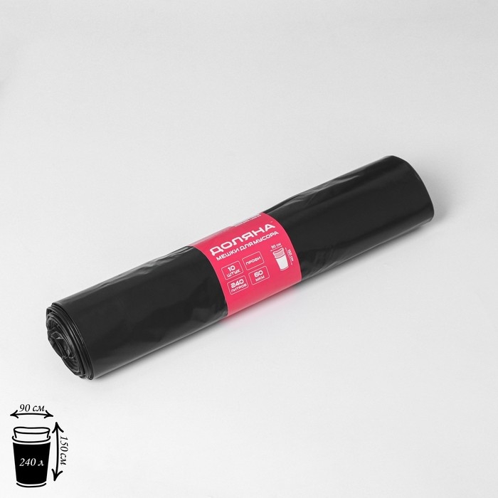 Мешки для мусора Доляна «Профи», 240 л, 90×150 см, 60 мкм, ПВД, 10 шт, цвет чёрный