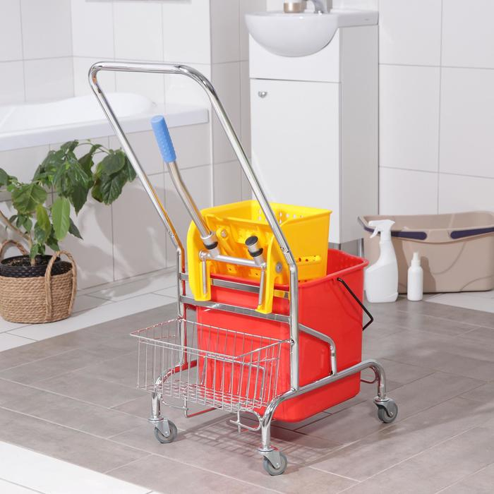 Тележка уборочная одноведерная, с отжимом, 23 л, хромированная рама