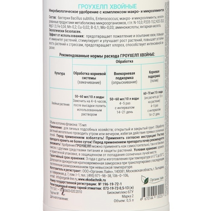 Удобрение жидкое ГРОУХЕЛП для хвойных растений, 500 мл