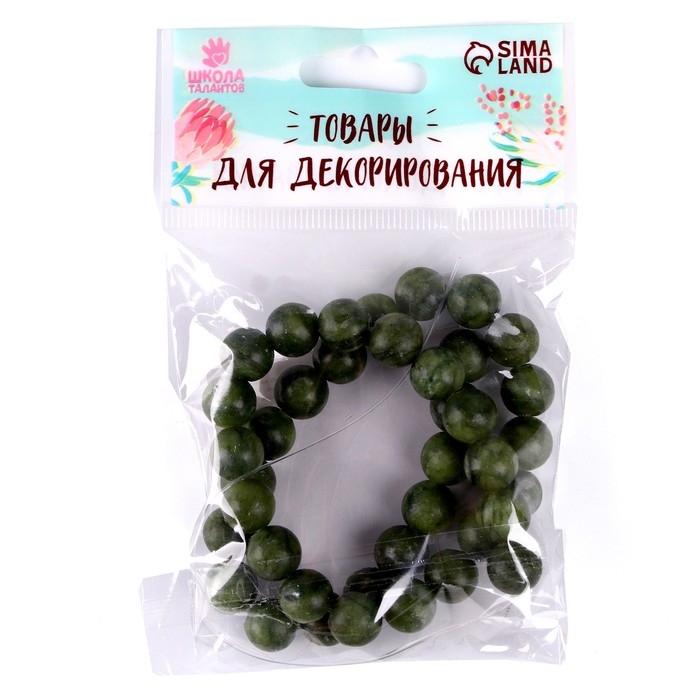 Бусины из натурального камня «Зелёный нефрит» набор 36 шт., размер 1 шт. — 10 мм