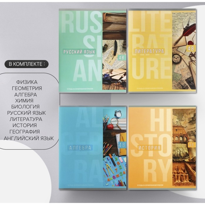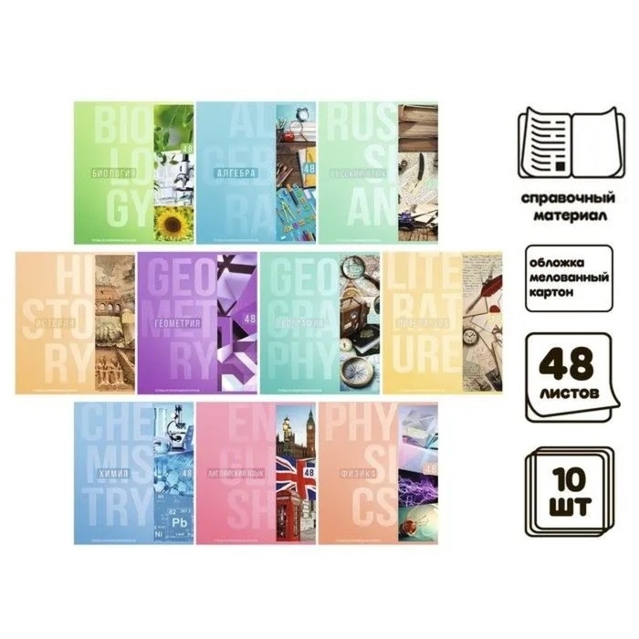 Комплект предметных тетрадей Calligata TOP "Полоса", 48 листов, 10 предметов, со справочным материалом, обложка мелованный картон, ТВИН-лак + выборочный УФ-лак, блок офсет