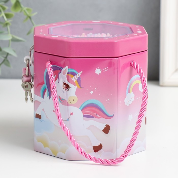 Копилка металл с замочком "Сказочные сюжеты. Шестиугольник" МИКС 11,5х11,5х12 см